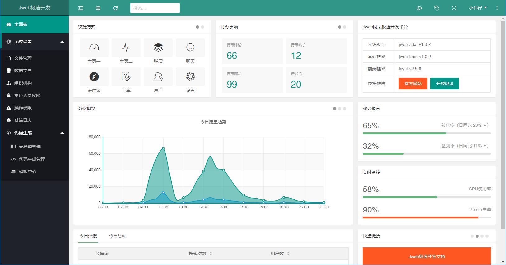 Jweb-adai 是基于jweb-boot+ layui (opens new window)开发的一套易于开发与使用的微服务极速开发平台。